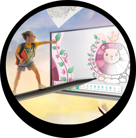 A Linha Interativa são lousas digitais em tamanhos amplos que possuem tela touch screen. As lousas acompanham duas canetas para aproveitar ao máximo as funções do equipamento.